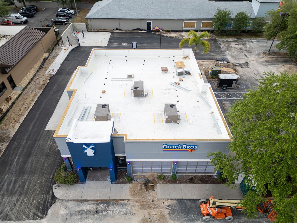 Client: Dutch Bros Coffee Location: 6162 Goldenrod Rd, Orlando, FL Project Type: New Construction Commercial Roofing