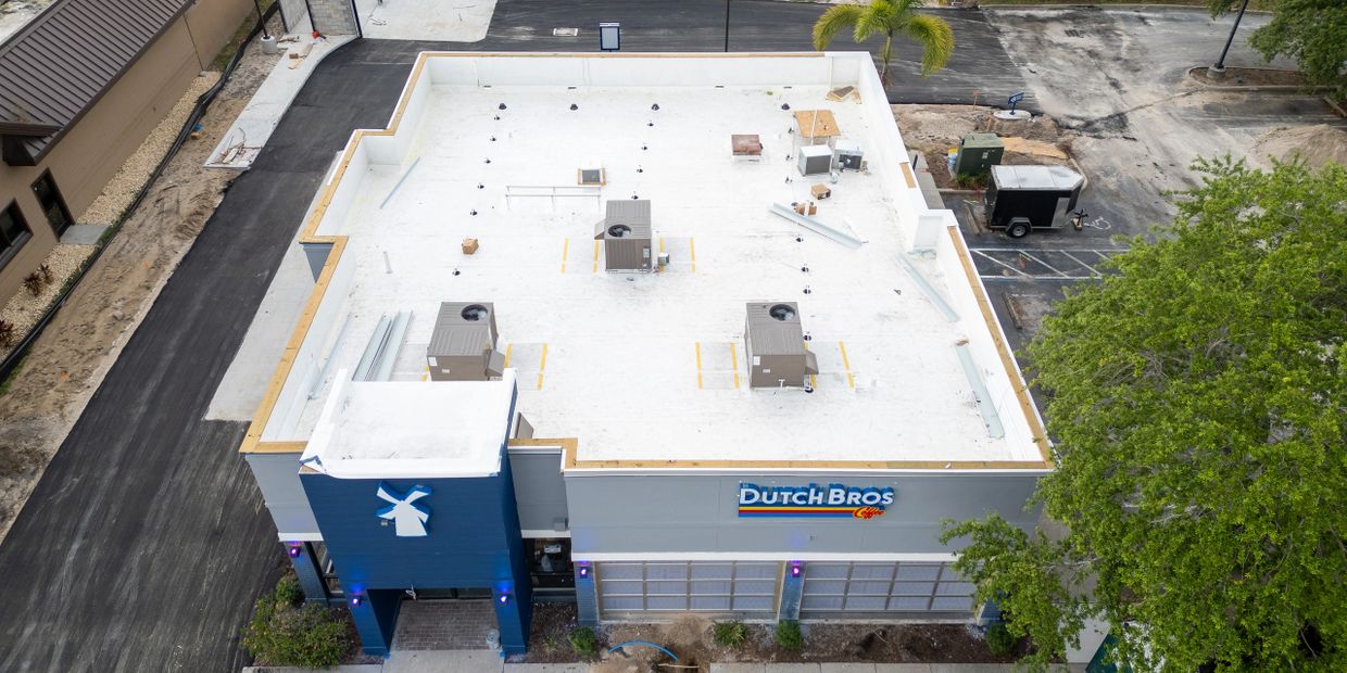 Kodi Contracting & Roofing proudly serves a diverse range of commercial clients throughout Florida, providing top-tier roofing solutions that ensure durability, longevity, and peace of mind. Our expertise spans various industries and roofing systems, from new construction to full-scale replacements. Here is a look at some of our recently completed projects. Dutch Bros Coffee -Orlando, FL Location: 6162 Goldenrod Rd, Orlando, FL Kodi Contracting & Roofing partnered with Dutch Bros Coffee to complete new roofing installations at two of their popular Florida locations. For fast-paced, high-traffic businesses like these, a quick and efficient installation is crucial to minimize disruption. Our crews worked meticulously to provide a seamless process, installing quality roofing systems that meet the specific needs of these commercial properties while upholding the Dutch Bros commitment to excellence. The new roofs provide superior protection and are designed to be energy-efficient, helping to maintain a comfortable indoor environment for staff and customers.